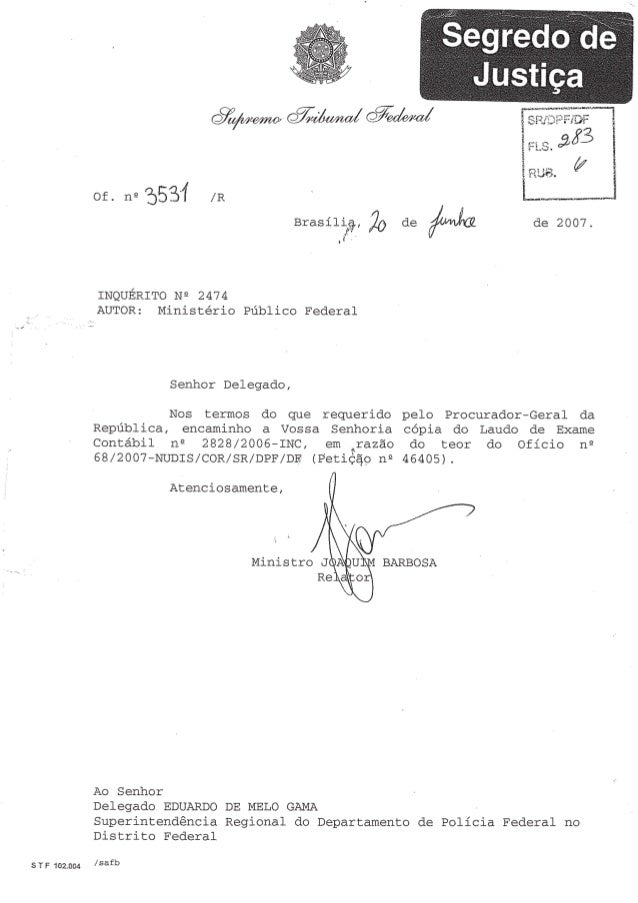 STF (agosto/2007) para somente apresentá-lo (o Laudo 2828) em novembro de 2007,
