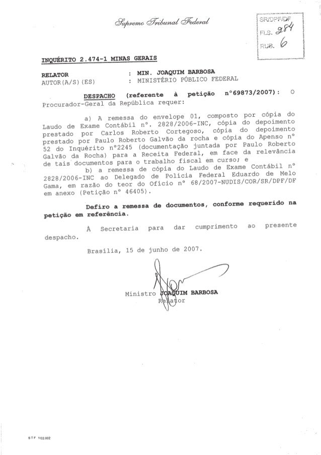 processo da AP 470 (14/11/2007), ao se dirigir a Joaquim Barbosa, a PGR/MPF fez